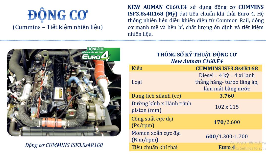 - - Auman C160 trang bị động cơ CUMMINS ISF.8s4R168 - MỸ