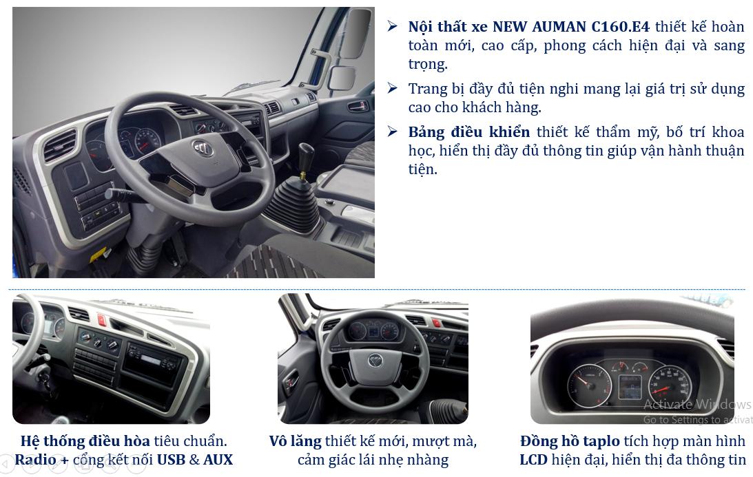 2. NỘI THẤT VÀ NGOẠI THẤT XE TẢI THACO AUMAN C160 THÙNG KÍN: