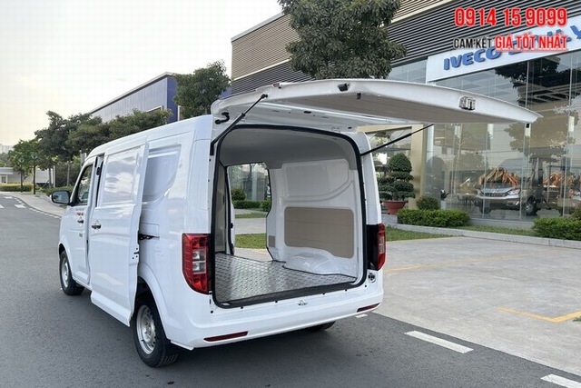 Thaco Frontier TF420V 2S mở 02 cửa lùa 2 bên, cửa sau bung lên phía trên
