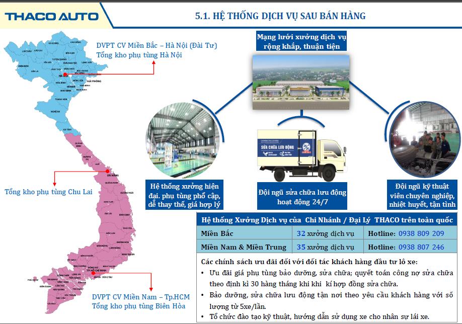 • Thaco Bình Dương với xưởng dịch vụ bảo dưỡng, sửa chữa lưu động 24/7, đội ngũ kỹ thuật viên với tay nghề cao, trang thiết bị đầy đủ, phục vụ tận tình!